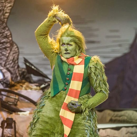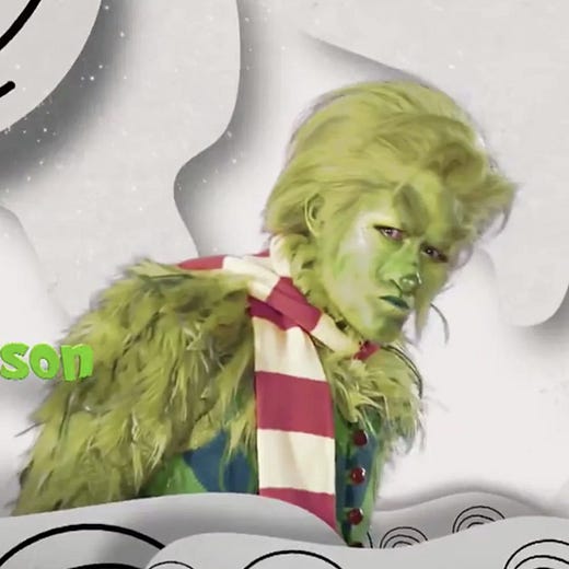 Why does Matthew Morrison do this to himself? He apparently said the inspiration for his characterization of the Grinch was Joaquin Phoenix's Joker and watching these clips, I can definitely see how hard he is trying to embody that nihilistic, misanthropic asshole we all came to love in the Joker (no). But uh, that's the thing -- he's trying so hard. Matthew Morrison has always tried so hard, hasn't he? But somebody lied to him several times and told him that he's fly, hot, sexy, and beautiful and he's nothing like that, he's nothing of the sort. He should just let go of this... ambition of being a dime a dozen heartthrob and just lean into the dorky, Theater Kid Adult™ that he truly is. That's a niche in Hollywood that needs to be filled in anyway!
